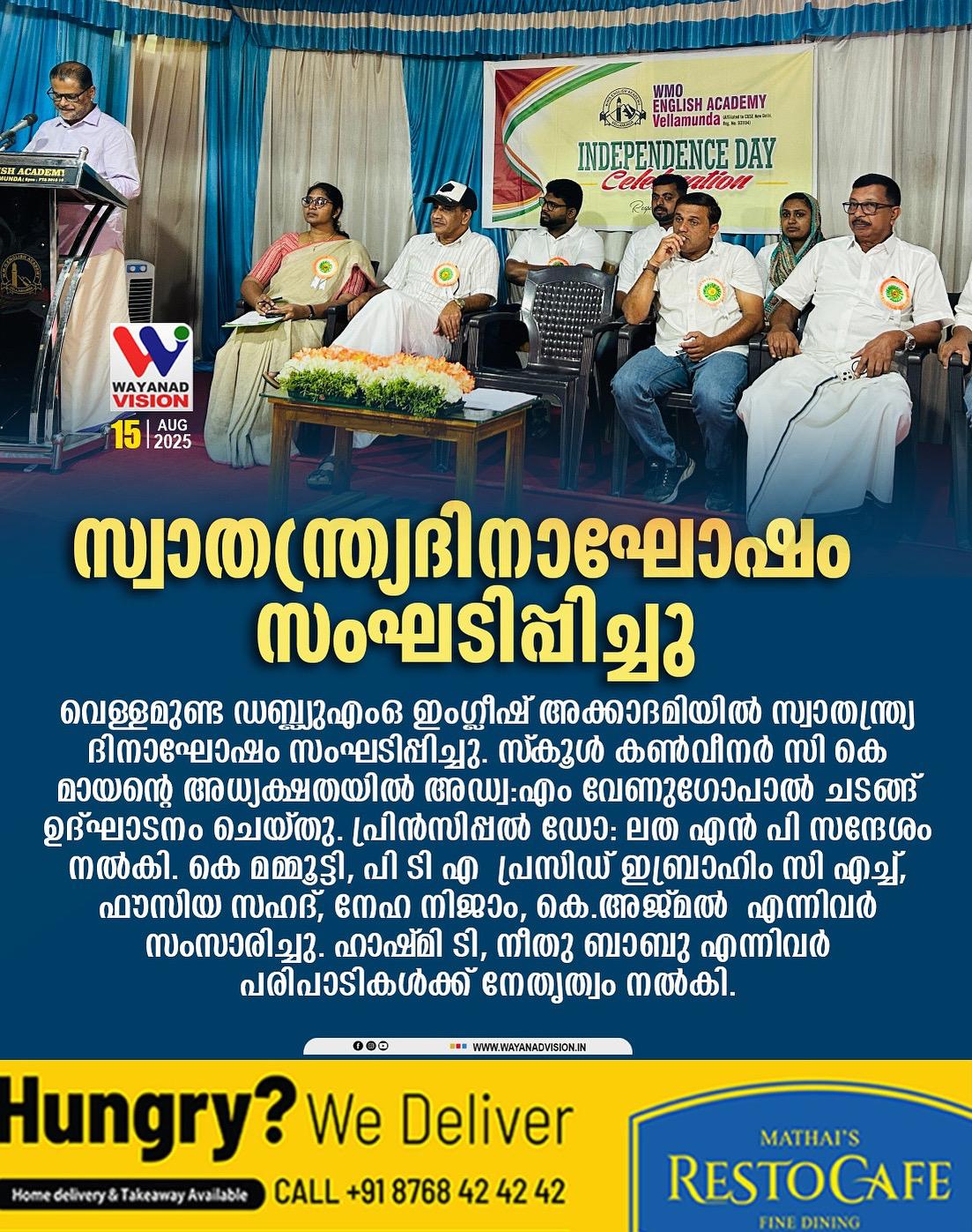 In the name of Almighty, the most gracious most merciful praise be to Almighty the cherisher and sustainer of the world. WMO English Academy Vellamunda, is a prestigious institution run under the agies of WMO Muttil, is completing 20 years with the blessing of the almighty and the restless service of socially committed personalities of WMO, eminent teachers, smart parents and very talented students. The academic year commenced after an intensive preparation through the action plan.